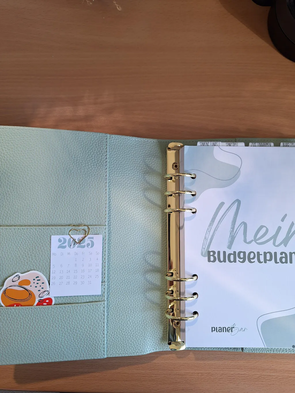 Dieser wunderschöne Binder ist ausgestattet mit den 6 großen Ringen und diversen Fächer. Der Binder bietet dir genügend Platz für deinen Budgetplaner oder Kalender.